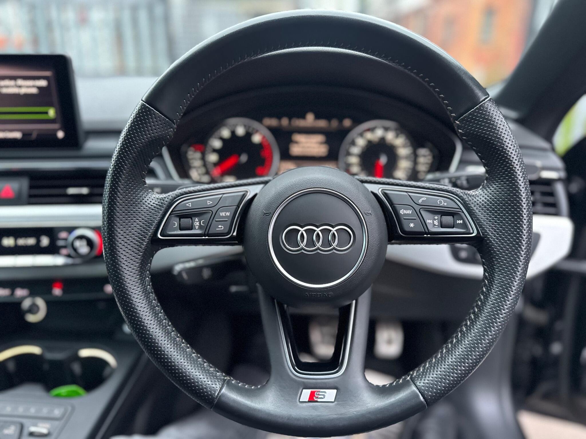 - High Multi-Function 3-Spoke Leather Steering Wheel with Grips in Perforated Leather and S Badging with Gear-Shift Paddles