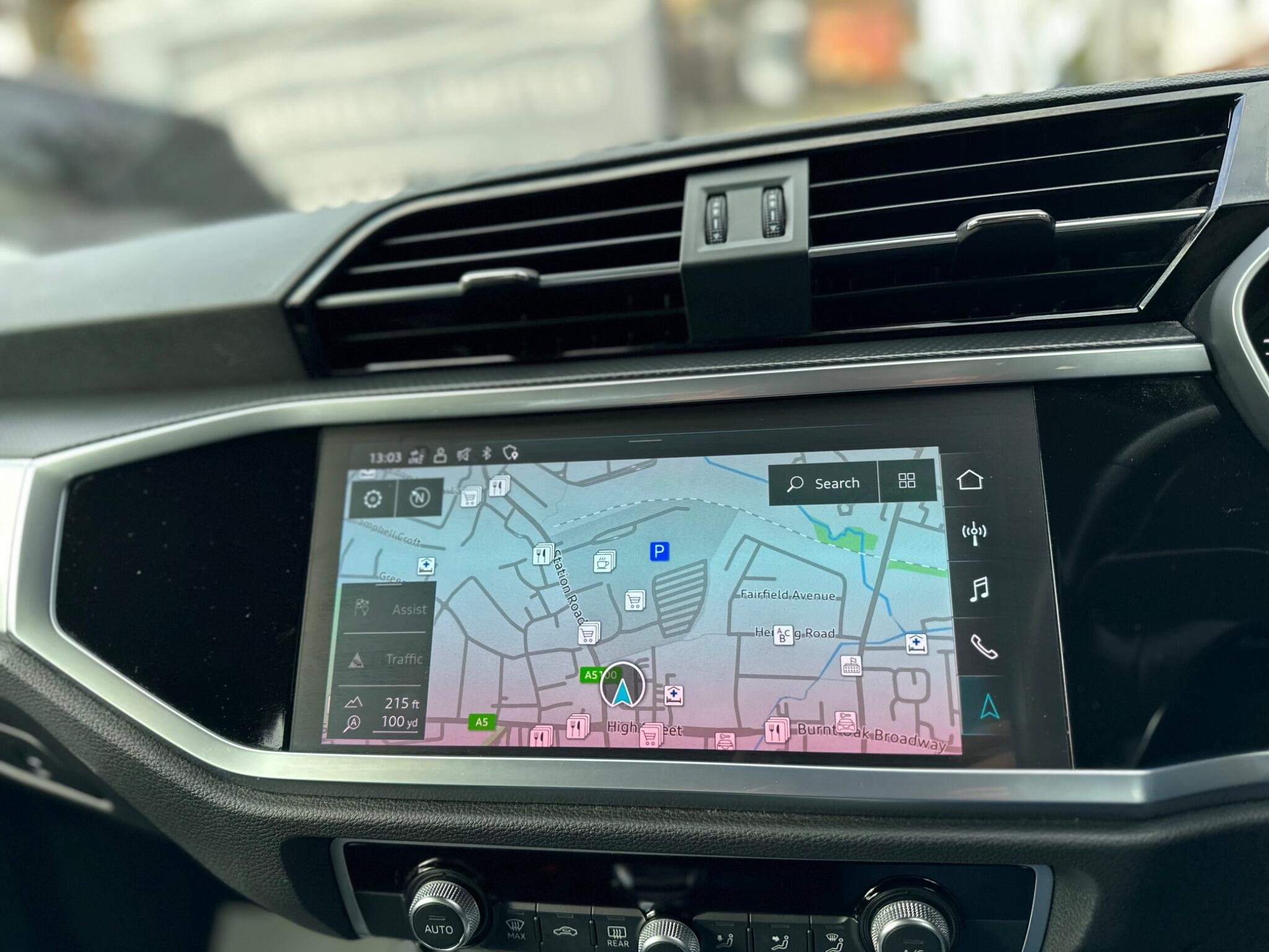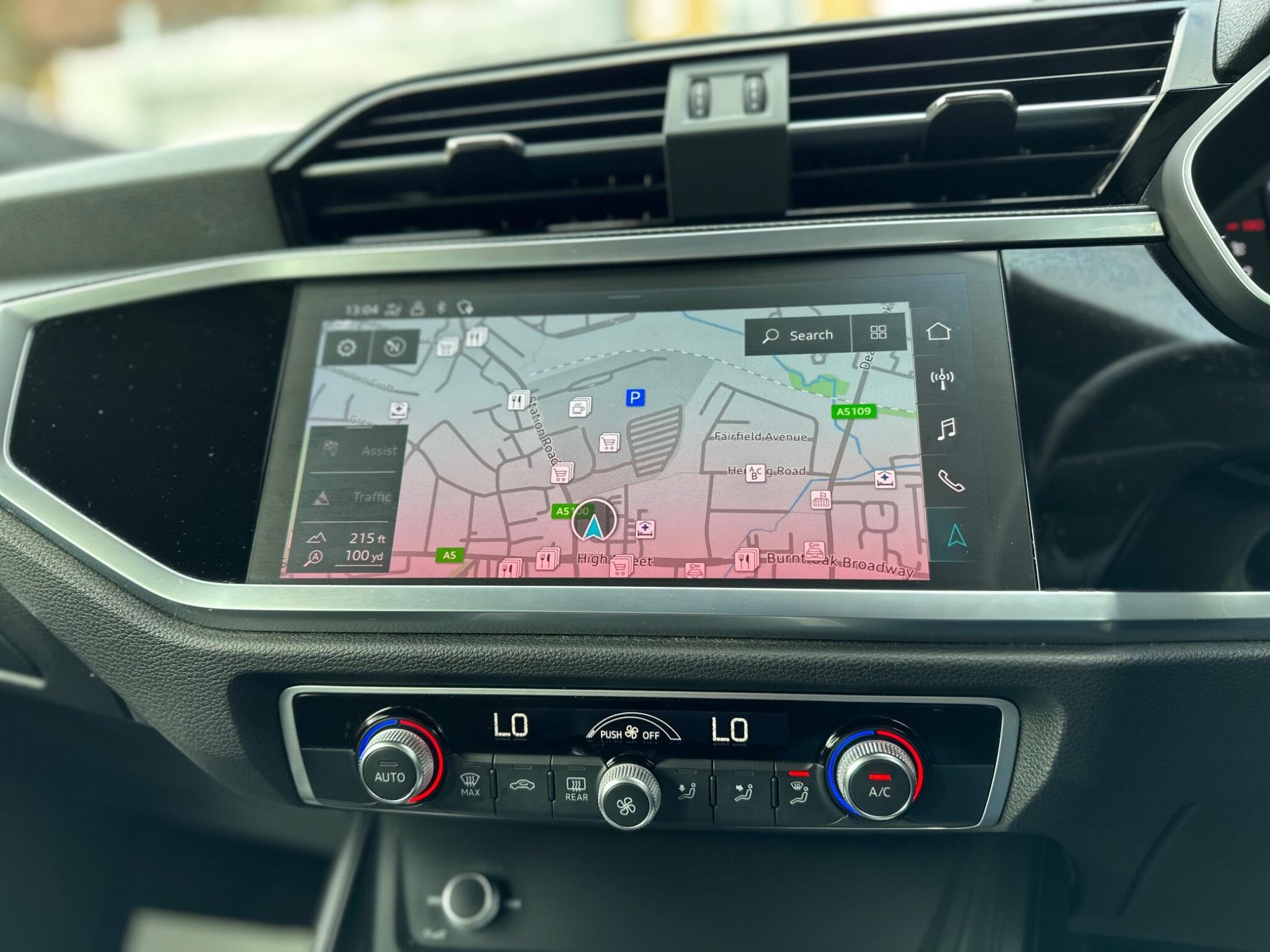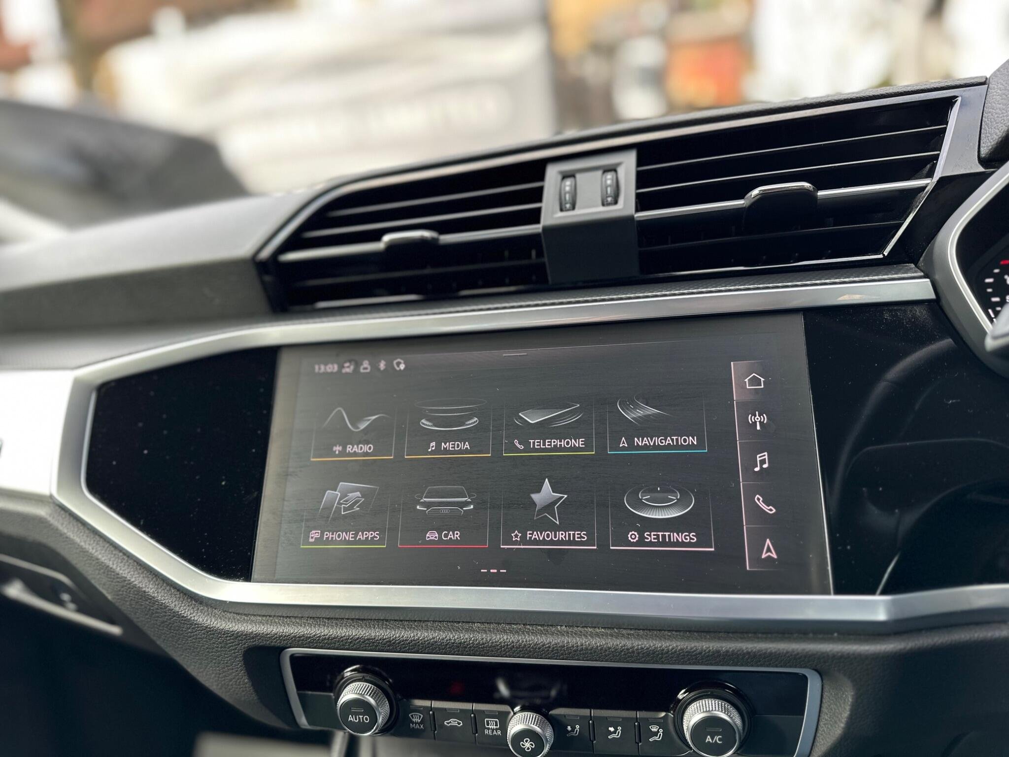 - Detail in Dashboard Around the MMI Touch Colour Display in Glass Look - Black with Surround in Aluminium Look